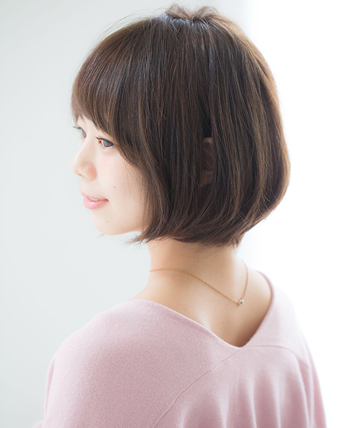 可愛さアップの黄金比バング。ショートスタイルの中でも比較的に前髪に印象を重視しておくことで出来上がる目力upの前髪がポイント。目元をスッキリ見せることで清潔感、好印象を与える事もできます。