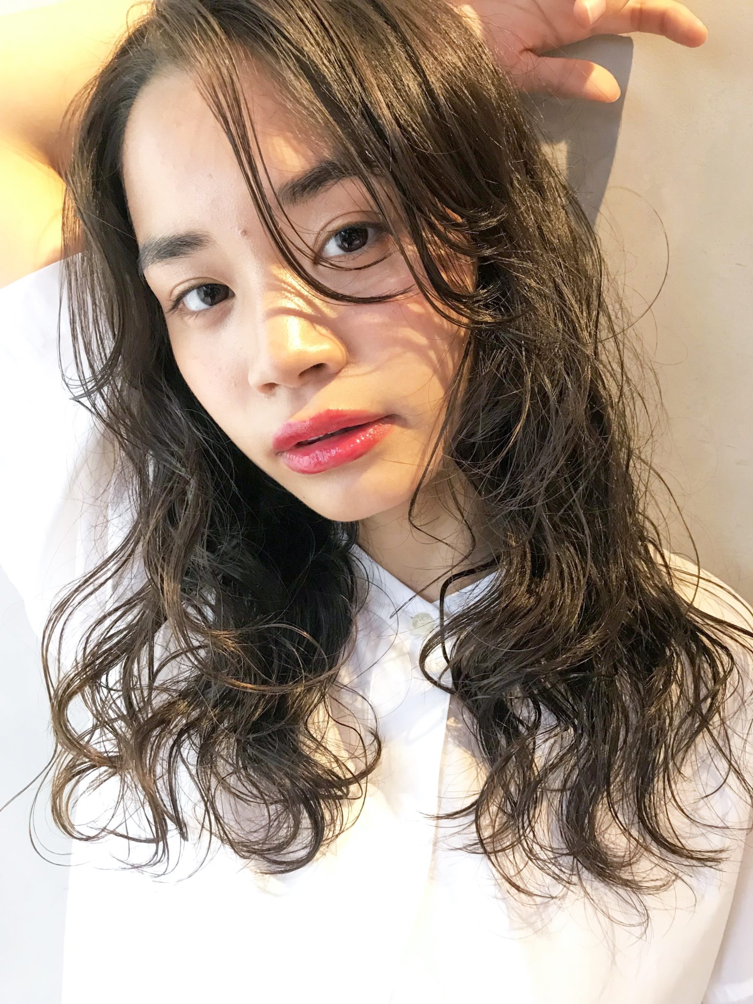 毛先のパーマがかかっている部分をぬらしてパーマを戻し、N.オイルを全体にもみこみ自然乾燥でOKなので、朝時間がない方でも簡単にスタイリングできます!!
